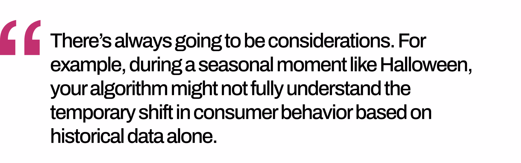 Menschliche Experten können KI-Modelle anpassen, um diese saisonalen Spitzen zu berücksichtigen und so sicherzustellen, dass KI-gestützte Entscheidungen den aktuellen Kontext widerspiegeln, z. B. Kunden, die Halloween-Süßigkeiten einkaufen, auch wenn dies nicht ihrem üblichen Kaufverhalten entspricht.