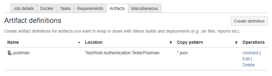 Bevor wir damit beginnen konnten, unsere Sammlung so einzurichten, dass sie nach der Bereitstellung unseres Dienstes ausgeführt werden konnte, mussten wir sicherstellen, dass unser Bereitstellungsplan Zugriff auf die Sammlung und die Umgebungen hatte, die wir verwenden wollten. Eine Möglichkeit, dies zu erreichen, besteht darin, die Sammlung und die Umgebungen in einem Quellcodeverwaltungssystem zu speichern. Wenn Sie dies tun, erstellen Sie zu Beginn der Bereitstellung eine Aufgabe, um die Sammlung und die Umgebungen aus dem Remote-Repository abzurufen. In unserem Fall haben wir beschlossen, die Dinge einfach zu halten und unsere Sammlungen zusammen mit dem Code zu speichern, mit dem unsere Sammlungstests interagieren. Dies bedeutete, dass wir bereits im Buildplan, dem unser Bereitstellungsplan vorausging, Zugriff auf unsere Sammlungstests hatten.