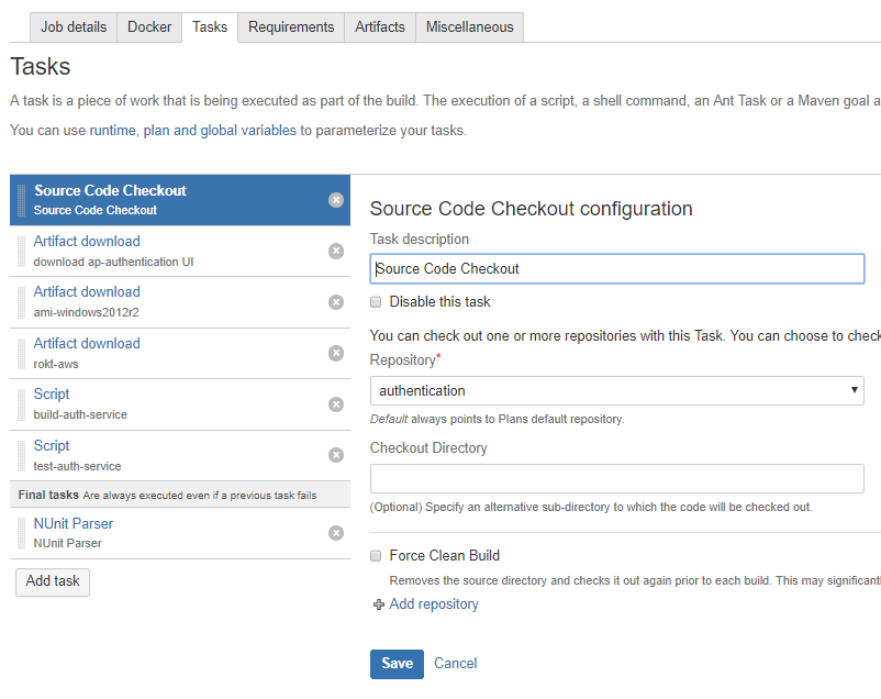 Rufen Sie von hier aus den Buildplan auf, der die Testergebnisse analysiert. Wir haben dieselbe bamboo_deploy_release Variable weitergegeben, um die richtigen Testergebnisse identifizieren und herunterladen zu können.
