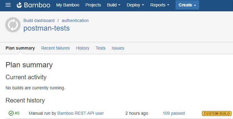 Obwohl es möglich ist, nach einer erfolgreichen Bereitstellung mithilfe von Bamboo-Triggern einen weiteren Build-Plan auszulösen, haben wir uns gegen diesen Ansatz entschieden. Wir wollten sicherstellen, dass bei jeder erfolgreichen Bereitstellung unsere Postman-Sammlungstests ausgeführt und korrekt analysiert werden. Dazu haben wir unserem zweiten Buildplan mitgeteilt, wo die Testergebnisse zu finden sind, die er analysieren soll. Wenn wir versucht hätten, Trigger für dieselbe Aufgabe zu verwenden, wären wir auf das Problem gestoßen, dass wir dem Build nicht sagen könnten, wo die Testergebnisse zu finden sind. Wir hätten einen statischen Ort angeben können, an den wir die neuesten Testergebnisse schreiben würden, aber bei diesem Ansatz gab es einige Randfallszenarien, die dazu geführt haben könnten, dass einige Testergebnisse nicht analysiert wurden. Allerdings ist die Verwendung von Triggern zum Aufrufen des Build-Plans anstelle eines API-Aufrufs eine absolut gültige Strategie, und ich bin mir sicher, dass es Lösungen für die oben genannten Probleme gibt.