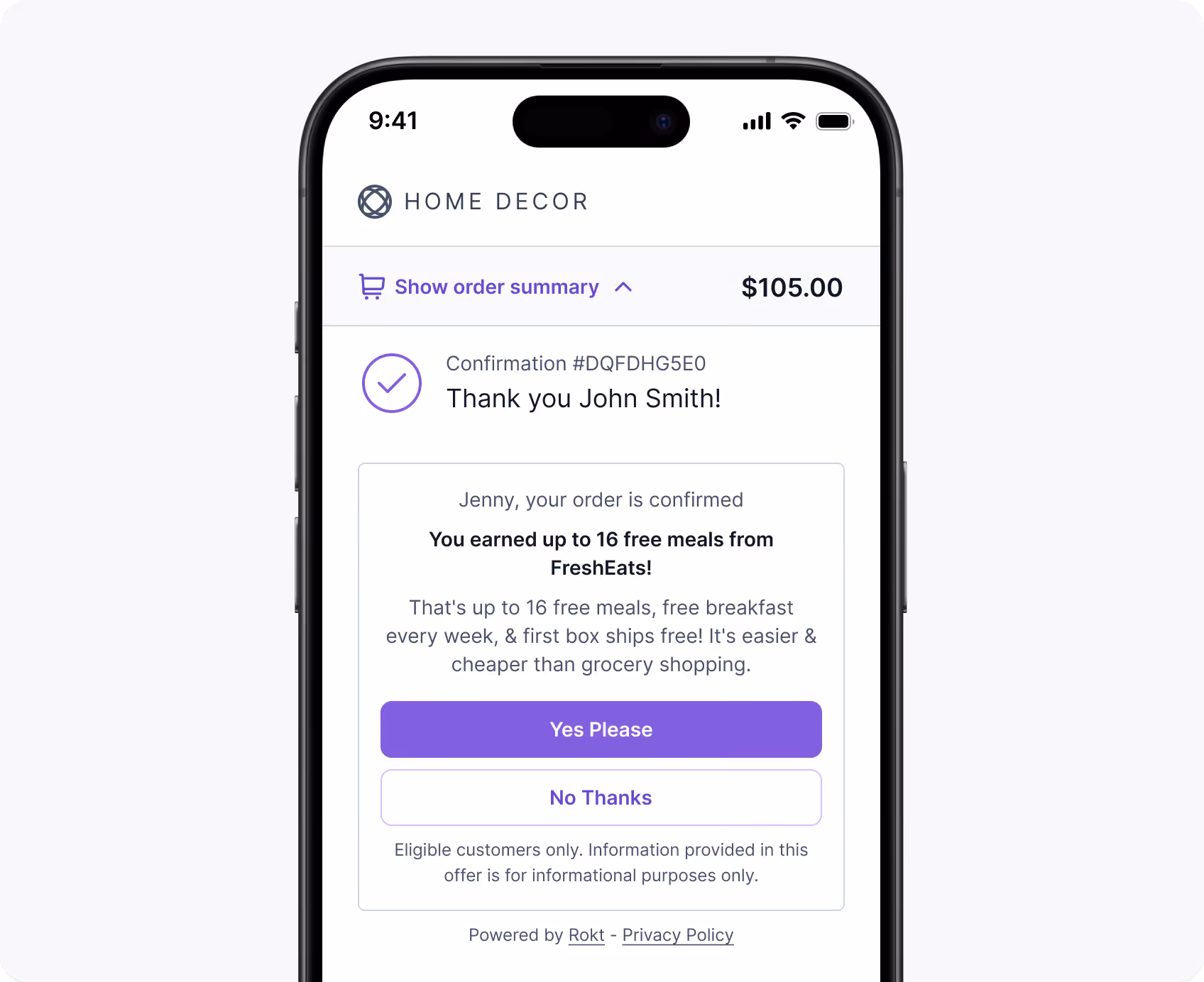 Hier kommt Post-Purchase-Marketing — und Rokt—kann das gesamte Spiel verändern, sowohl für Kunden als auch für Unternehmen, die ihr Geschäft anstreben. Mit unserer KI-gestützten Plattform können Sie aus Ihren eigenen First-Party-Daten umsetzbare Erkenntnisse ableiten und so besser verstehen, was für Kunden am relevantesten ist. Wenn Sie diese Informationen dann verwenden, um den besten Kunden zum besten Zeitpunkt die besten internen und/oder Drittanbieter-Angebote zu präsentieren, ist das eine Win-Win-Situation. Kunden können sich über relevante, wertschöpfende Produkte und Dienstleistungen informieren, während E-Commerce-Unternehmen eine zusätzliche Einnahmequelle erschließen.