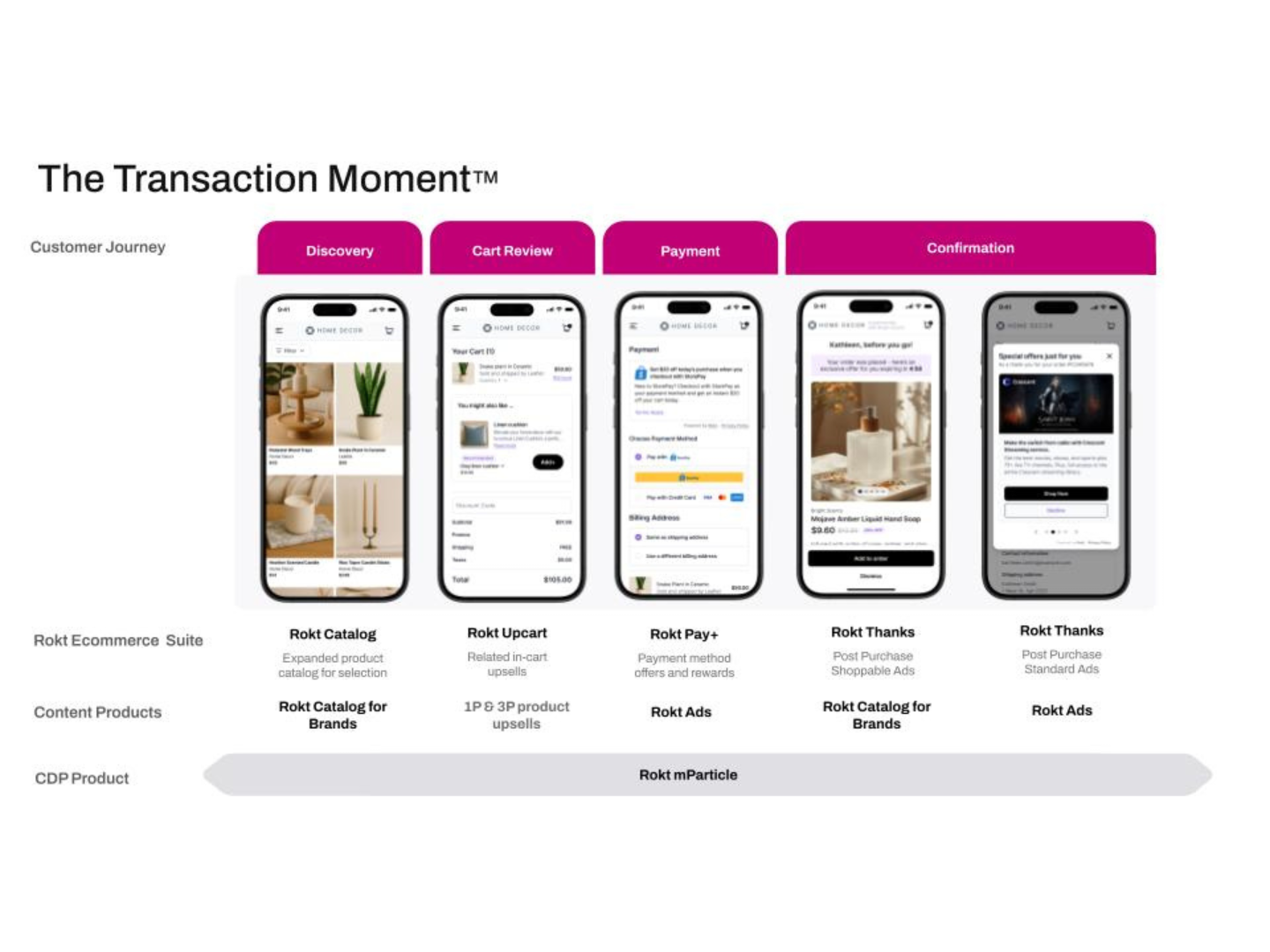 Der Transaktionsmoment ist der kritische Punkt im E-Commerce, der von der Auswahl bis zur Bestätigung reicht, wenn die Aufmerksamkeit, das Vertrauen und die Absicht der Kunden ihren Höhepunkt erreicht haben. Rokt erschließt in diesem Moment Mehrwert, indem es Relevanz in Echtzeit liefert, einschließlich KI-optimierter Erlebnisse wie Upselling-, Zahlungs-, Treue- und Bestätigungsseitenangebote, und gleichzeitig Transparenz, Sicherheit und Kontrolle für Partner gewährleistet. Dies verwandelt das, was früher nur als Ort für die Zahlungsabwicklung galt, in eine radikale Art und Weise, die Wirtschaft eines E-Commerce-Unternehmens zu verändern.