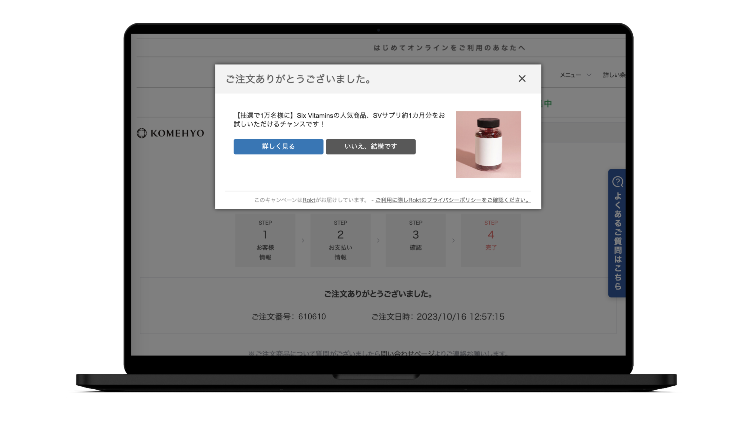 このように、「新たな顧客体験」の創出に加え、「付帯収益」も生み出すことができるという観点からコメ兵は「Rokt Ecommerce」の導入を決めた。