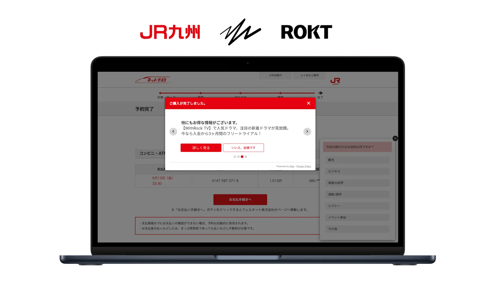九州旅客鉄道株式会社(JR九州)は、全社横断で推進する「未来鉄道プロジェクト」の一環として、鉄道予約サイトの完了ページに購入完了ページを収益化するプロダクト「Rokt Thanks」を導入しました。