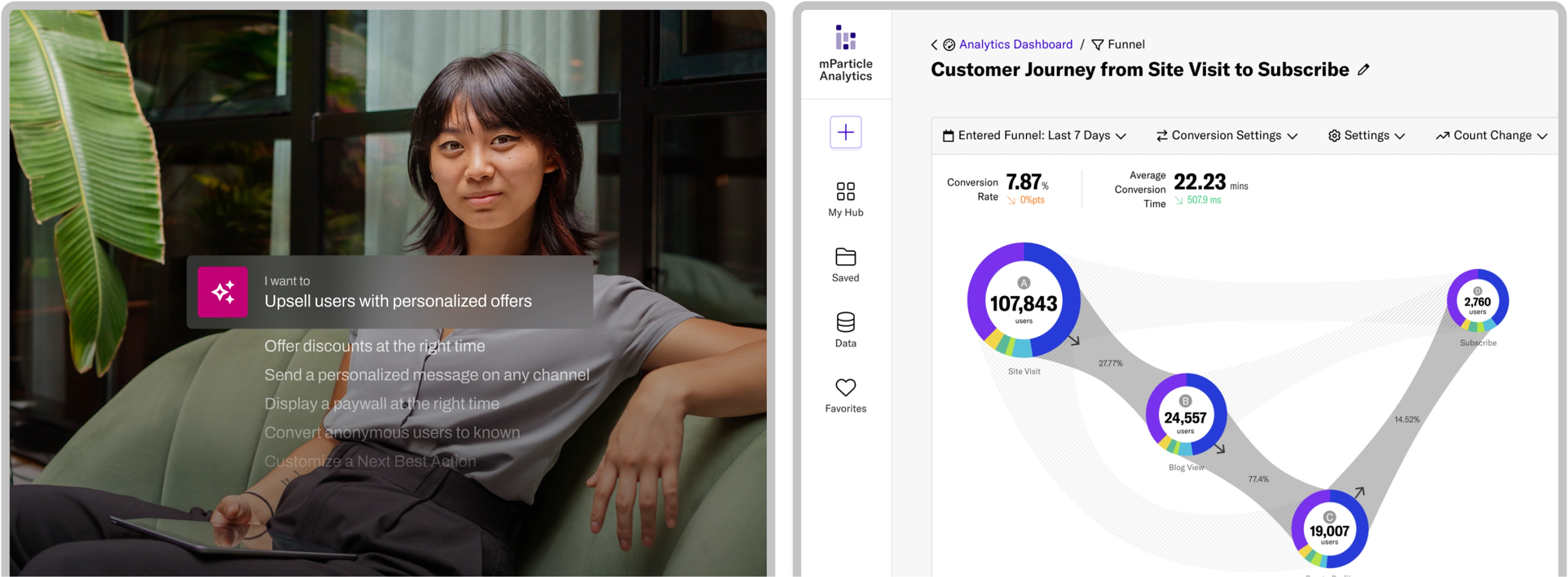 mParticle is a customer data platform (CDP) that acts as a bolt-on data science and engineering team. We help you automate processes, generate insights, respond in real time, and more. So you can scale quickly with data capabilities that could otherwise take months or years to build internally.