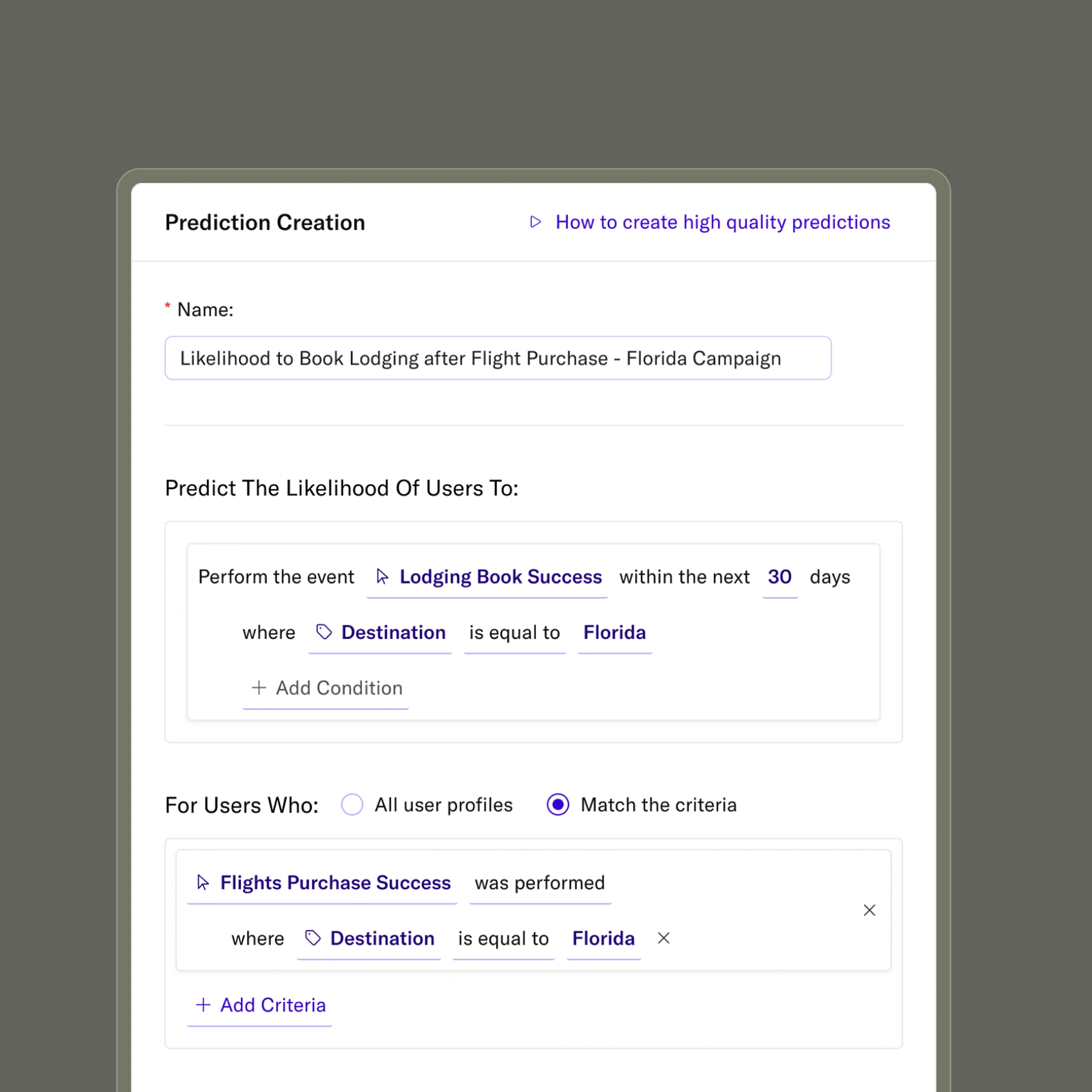Set a goal and let predictive audiences do the work for you. No complex audience building, SQL, or imported heuristics needed—just better performance at unprecedented scale.