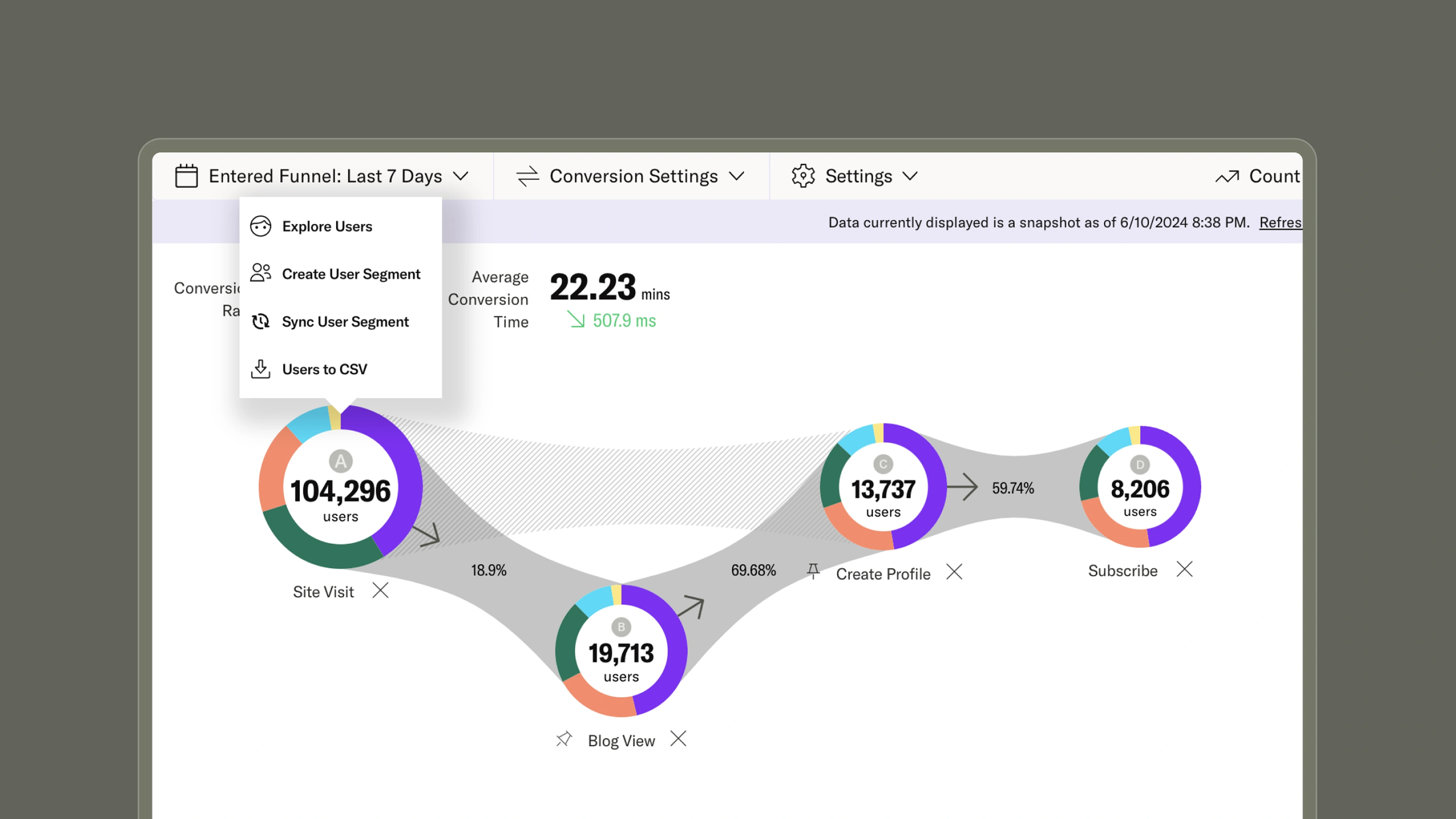 Build funnels and cohorts based on an in-depth analysis of how customers move through your product in real time.